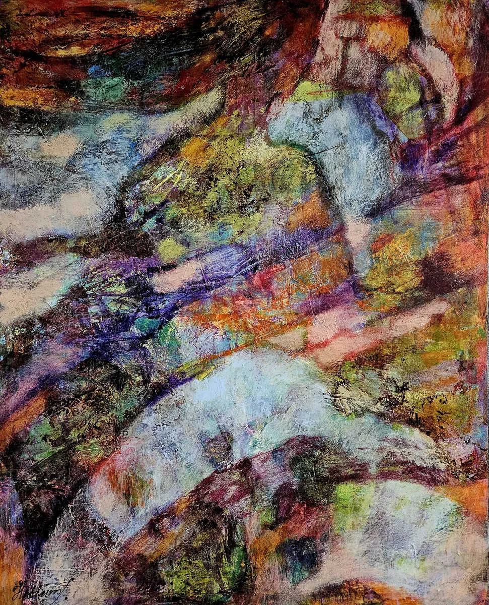 Soaring Through the Dreams invites the viewer into a realm where imagination and reality flow together in vibrant motion. Layers of translucent color — from deep turquoise and violet to amber and golden tones — intertwine like fragments of dreams remembered at dawn. Textured surfaces evoke landscapes both inner and outer: distant horizons, emotional currents, and fleeting visions rising into light. This abstract composition celebrates the freedom of the human spirit — its ability to move beyond the visible and to soar through the ever-shifting fields of memory and desire. Each brushstroke carries a sense of discovery, as if the painting itself were unfolding a dream. The painting is finished with a gloss varnish that enhances its luminosity and protects the surface.