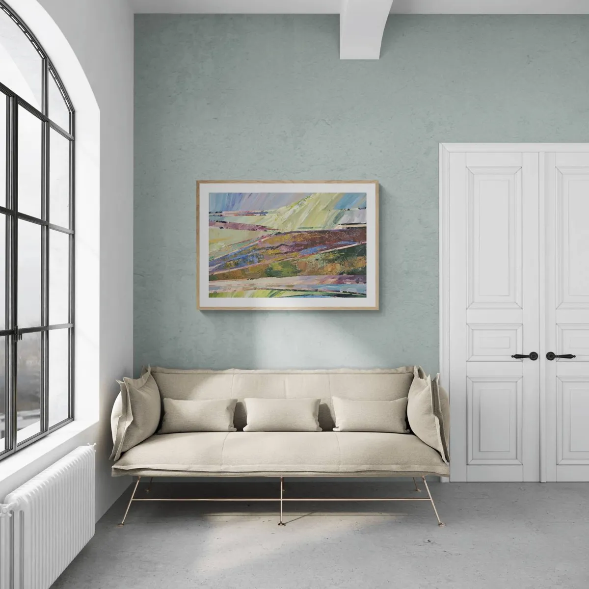 Where warmth becomes light — and the landscape begins to breathe within. The Summer Within reflects the quiet dialogue between the outer world and the inner one — where the warmth of the season turns into an inner state of clarity and openness. The painting captures not a specific place, but a sensation: sunlight diffused through memory, the pulse of life beneath the surface, the echo of green fields that remain even in winter. Layers of color unfold like emotional topography — each stroke both spontaneous and meditative. It’s a work about remembering the light, and letting it live inside. Finished with a satin varnish, enhancing the depth of color and protecting the surface with a gentle glow.